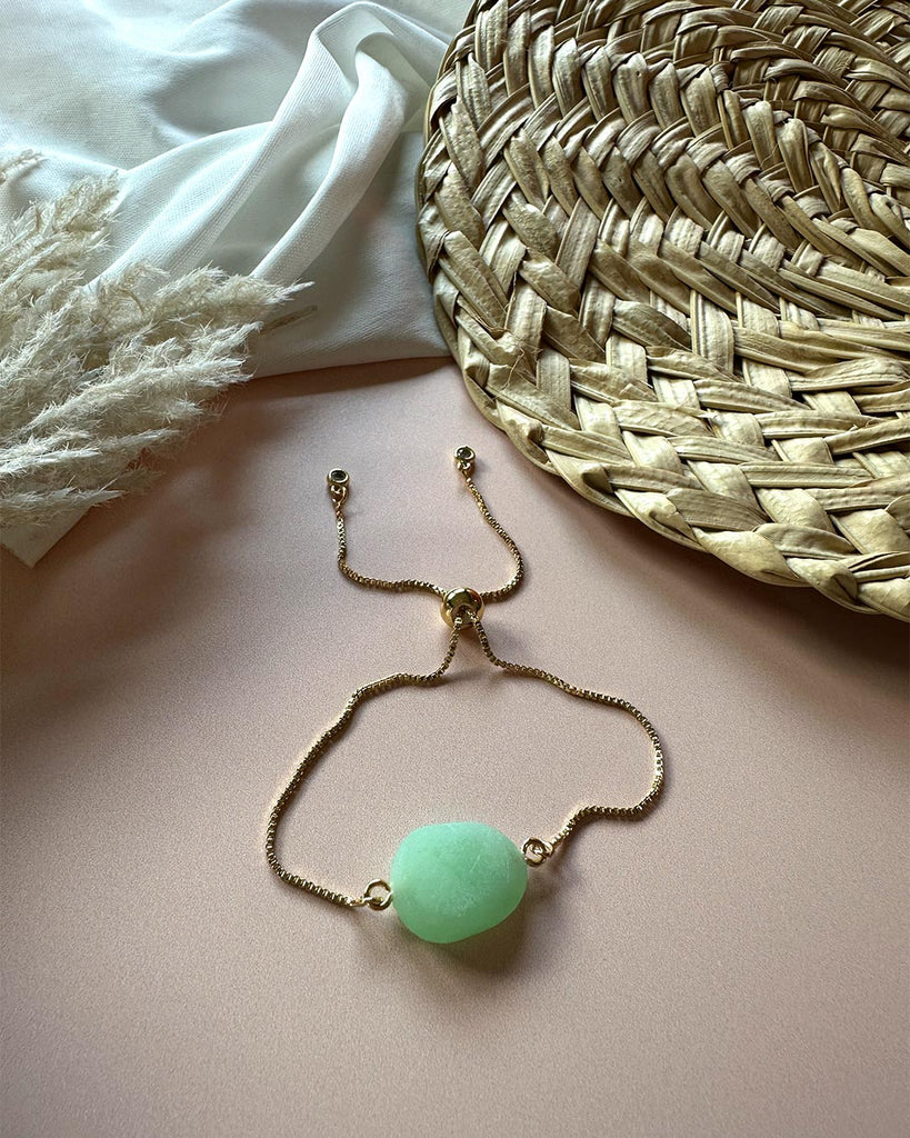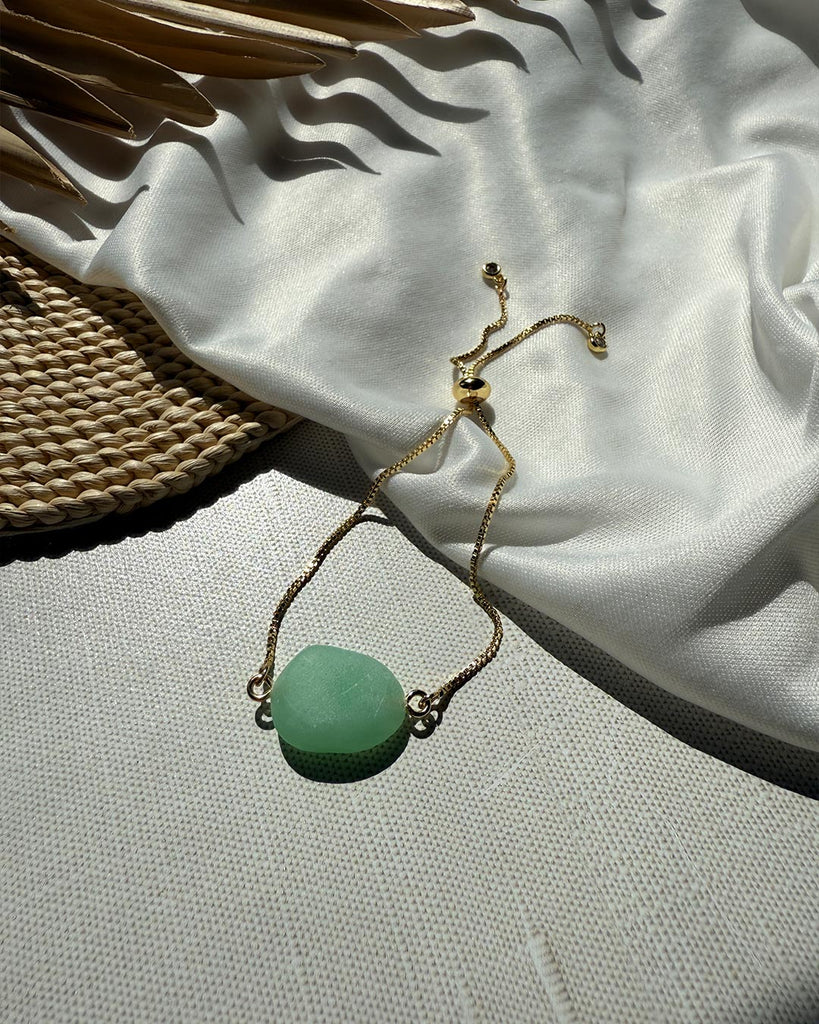 This hand-shaped polymer clay faux sea glass bracelet are the perfect beachy touch to any outfit.