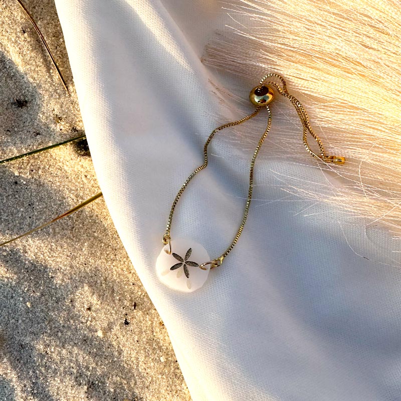 The adjustable chain allows for comfortable wear for many sizes. The chain circumference measures at approximately 9" when the bracelet is fully extended.