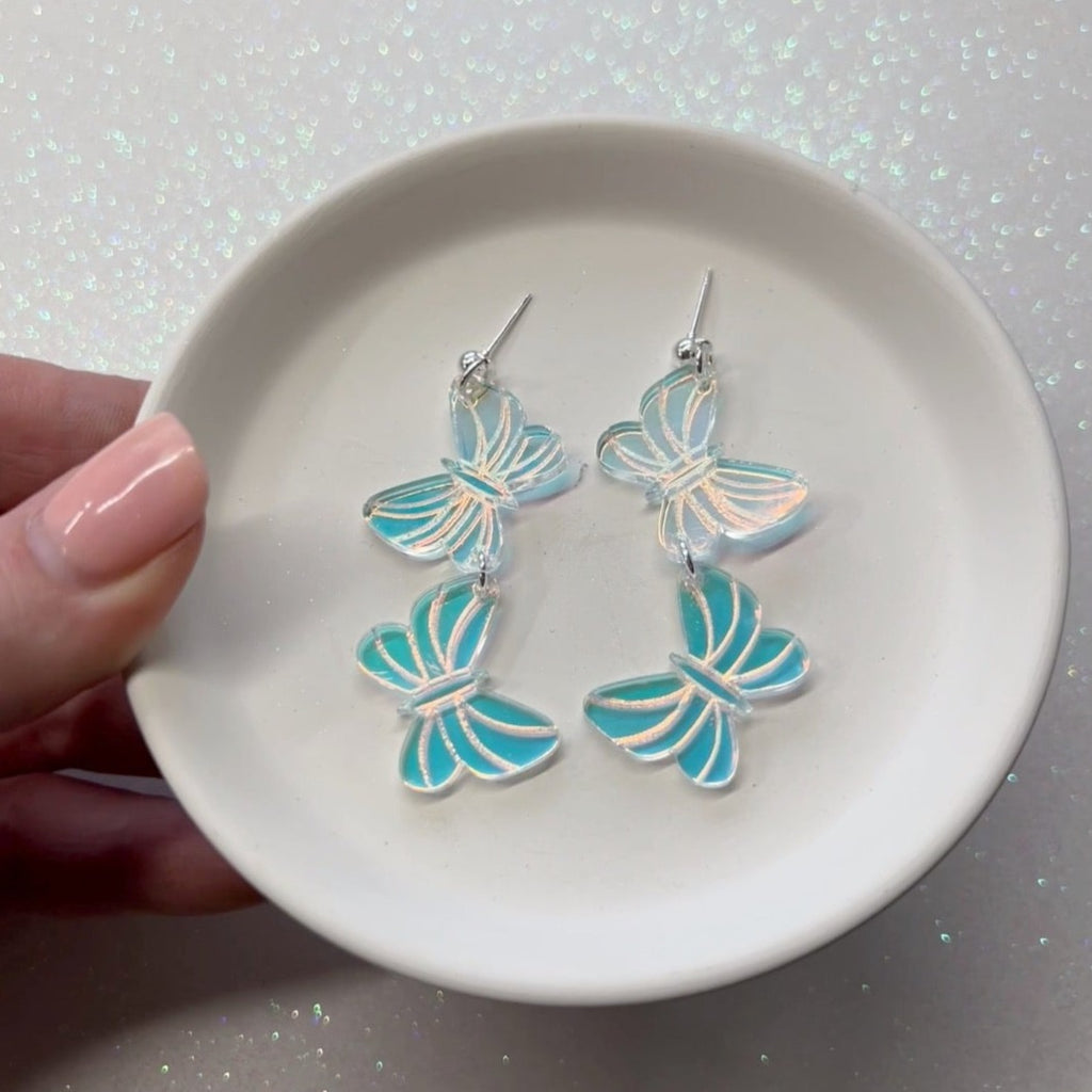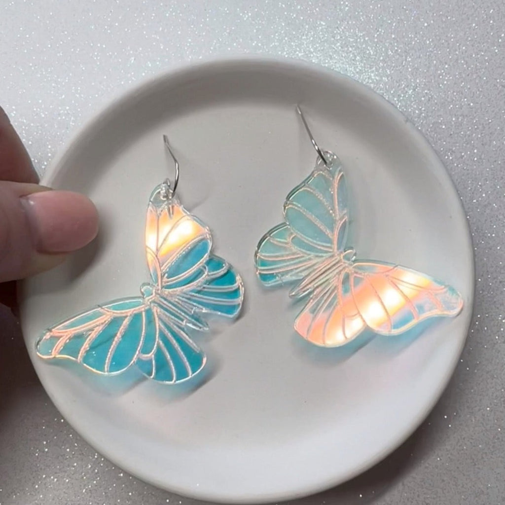 These Iridescent Dolly Butterfly Dangles are perfect for spring! They reflect all the colors of the rainbow when they catch the light!