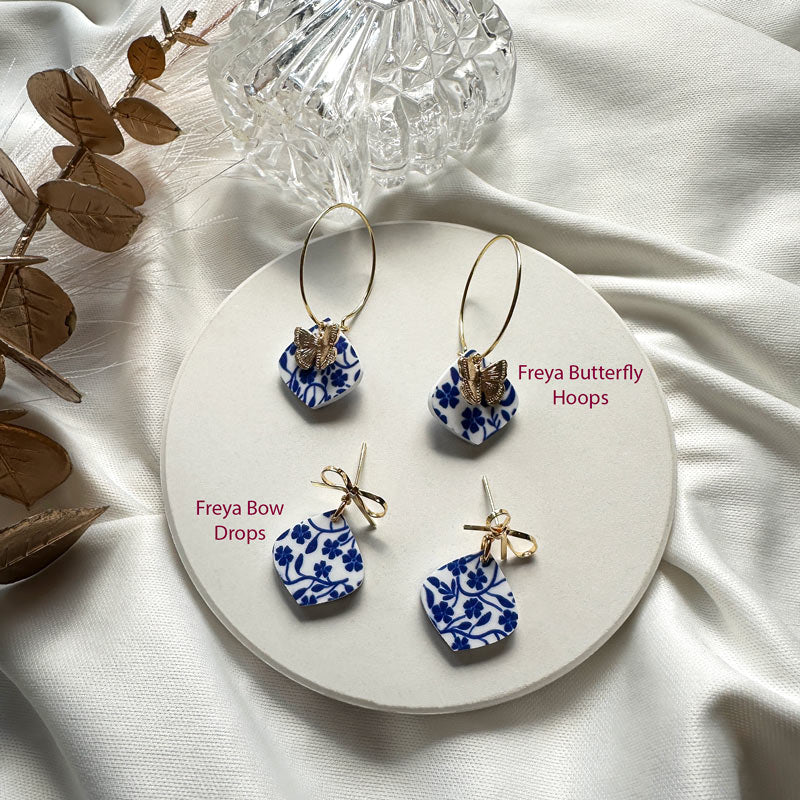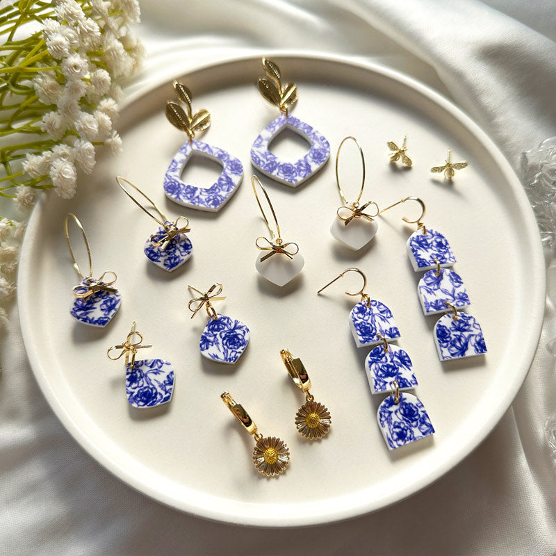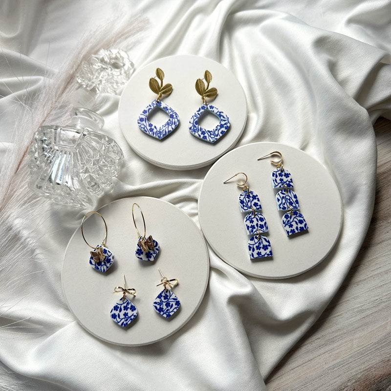 Indulge in the opulence of our Talk of the Ton Collection, inspired by the regency era. These blue and white chinoiserie earrings add a touch of sophistication to any outfit. Made from lightweight acrylic with a double-sided design, showcasing the intricate pattern. Hypoallergenic findings ensure comfortable wear.