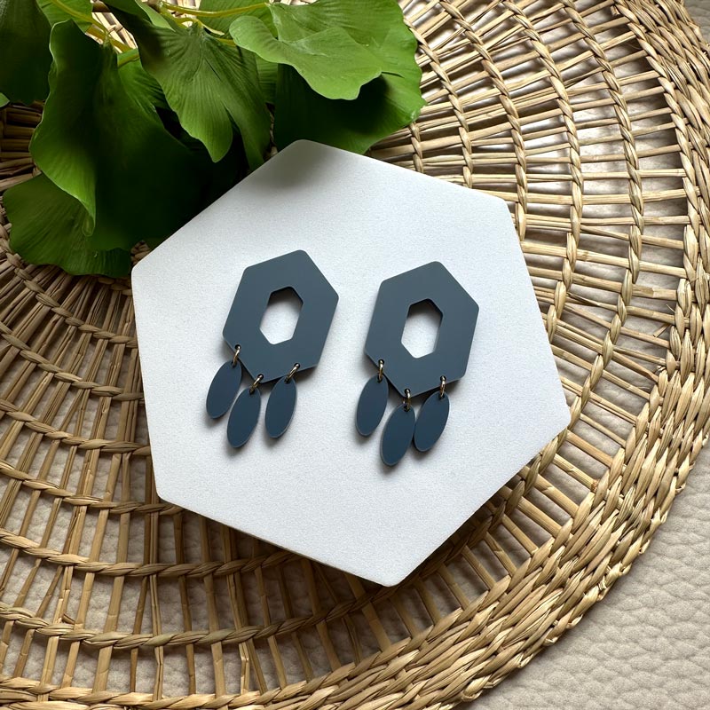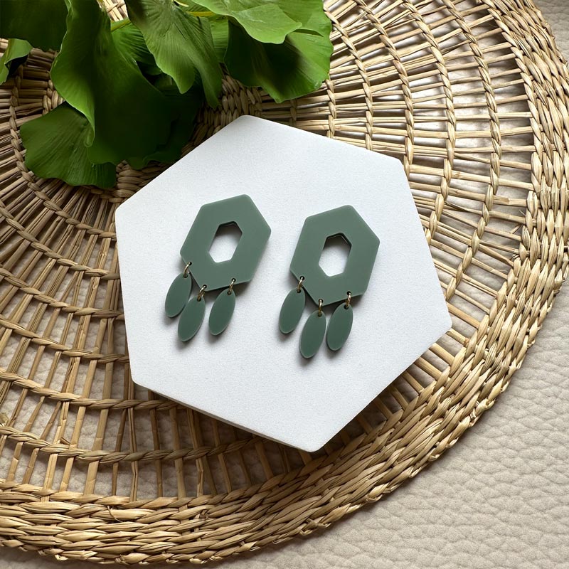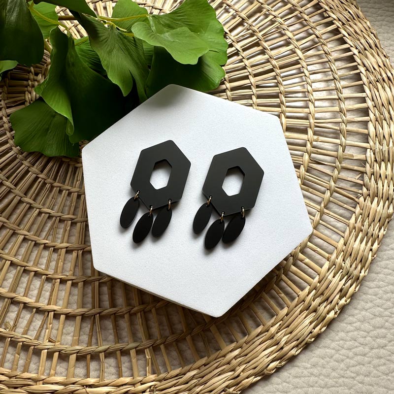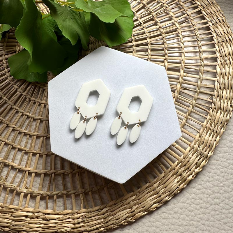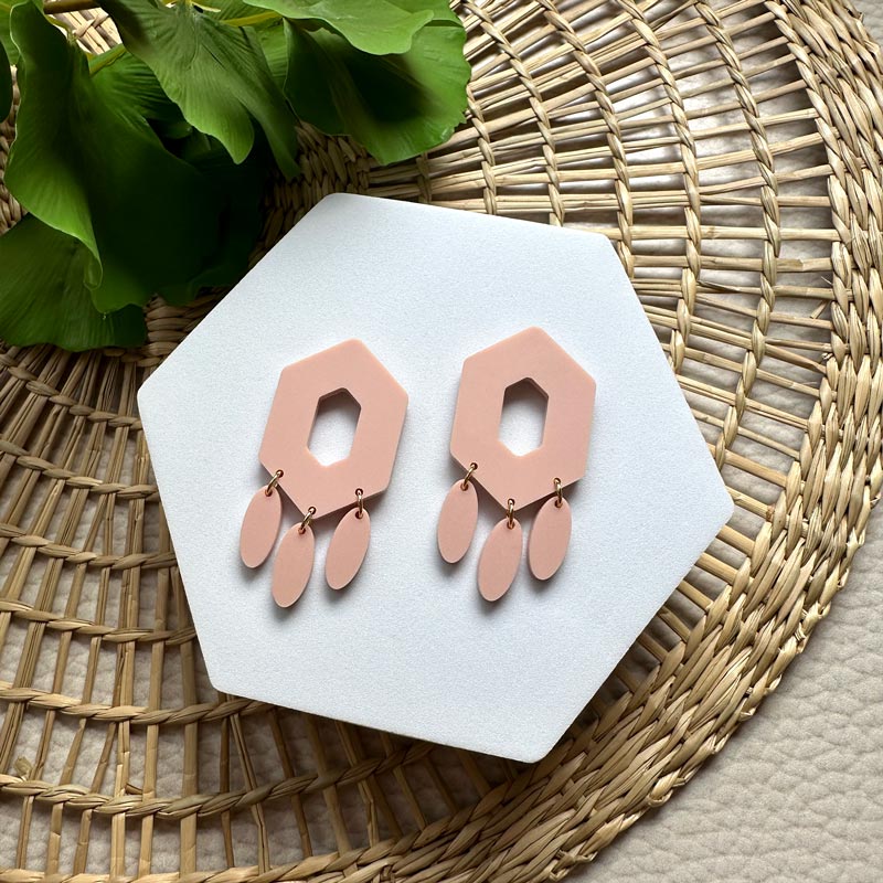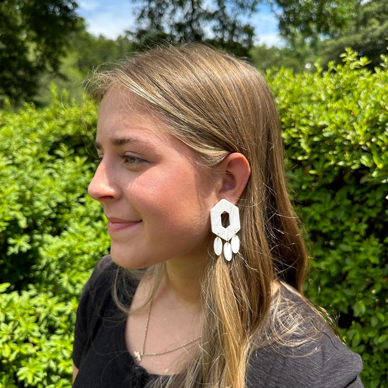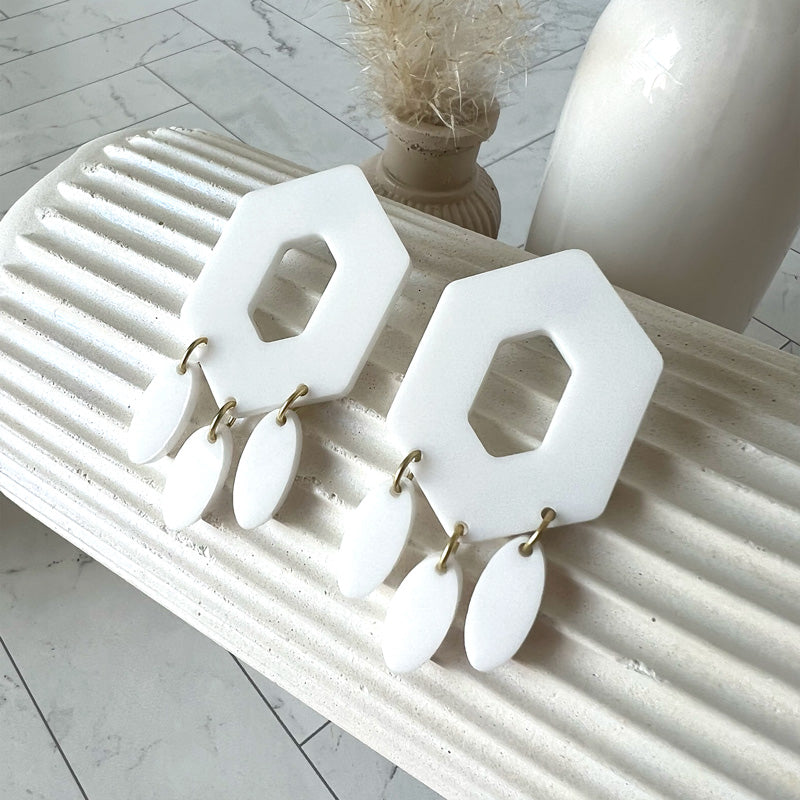 These earrings are made of acrylic and are very lightweight which makes them easy to wear all day!