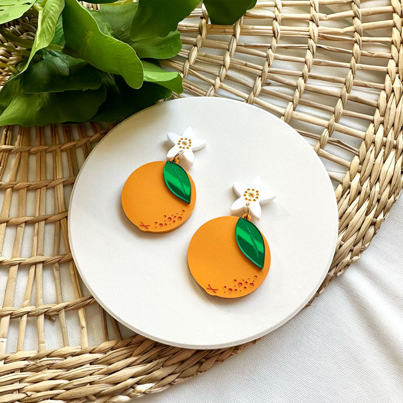 Introducing the Orange Blossom Dangles, handmade and lightweight for your perfect summer ensemble. Crafted with hypoallergenic titanium posts and custom designed with lightweight, these earrings are ideal for cookouts and summer soirees alike. Bring a touch of sophistication and beauty to your event with this fun pair.