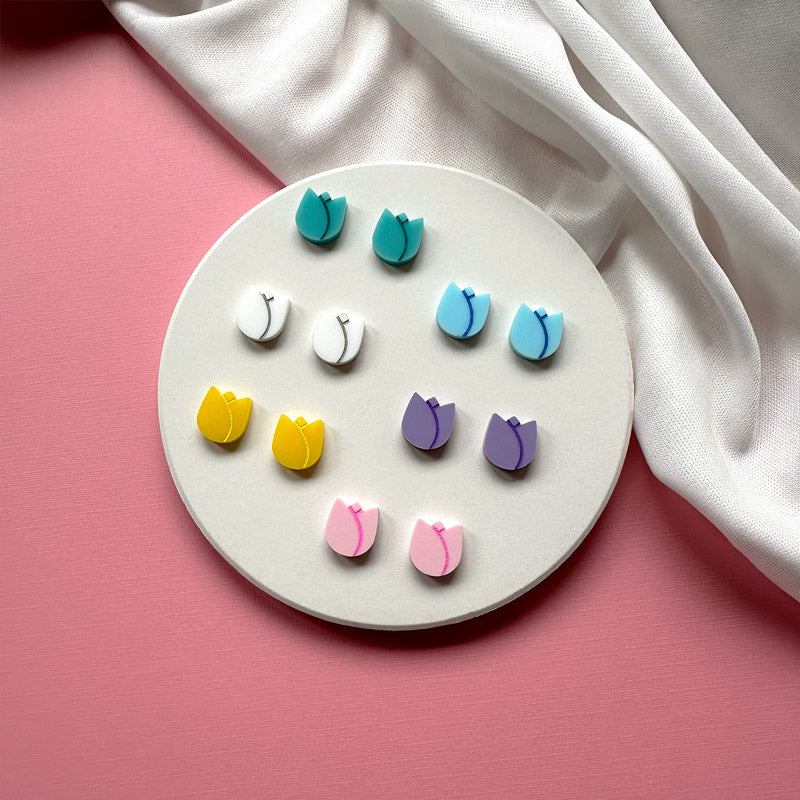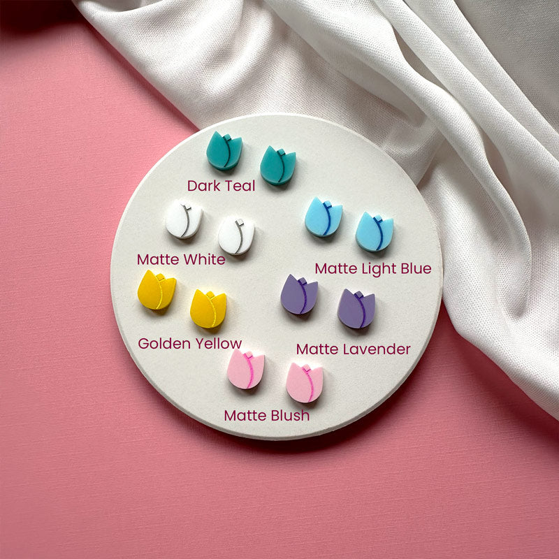 Introducing the Tiptoe Through the Tulips Collection - a playful and colorful addition to your earring collection! Made with lightweight acrylic, these tulip earrings come in 6 vibrant colors to elevate any outfit.
