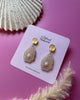 A little coastal magic, handcrafted just for you. These pearlescent oyster earrings shimmer softly in the light, each one layered with hand-painted gold accents that highlight the natural flow of the design. A petite faux pearl sits at the center—just where any good Southern oyster would hide her treasure.