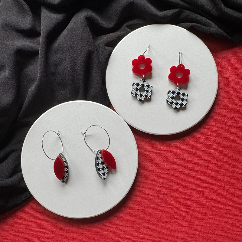 These earrings are made from lightweight acrylic and hypoallergenic stainless steel hoops and hooks.