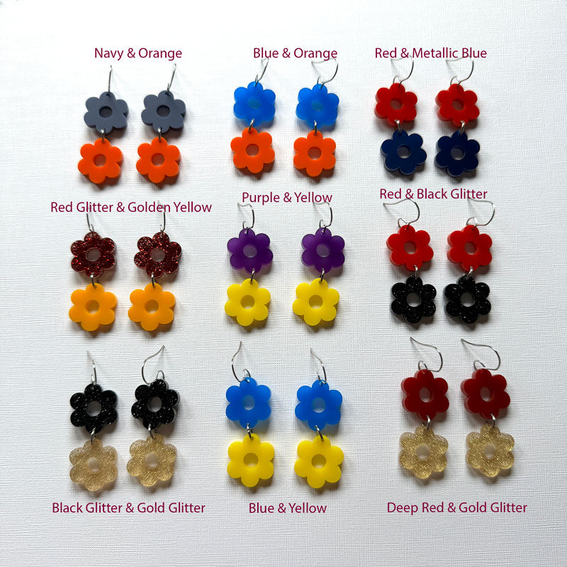 These earrings are made from lightweight acrylic and hypoallergenic stainless steel hooks.
