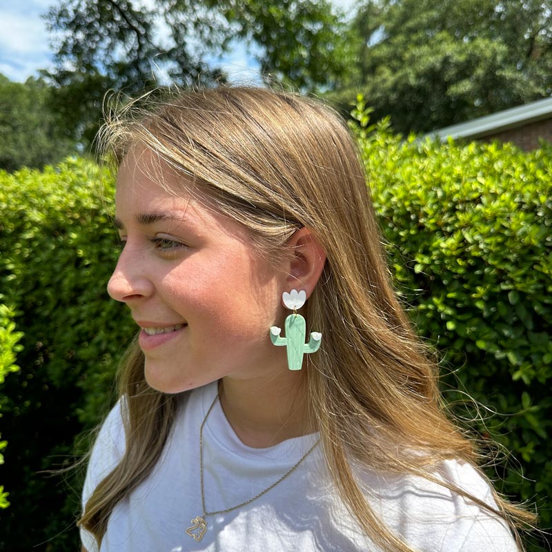Brighten up any outfit with these quirky and playful cactus dangles. Made from lightweight acrylic, they're comfortable to wear all day. Plus, with hypoallergenic titanium posts, they're safe for even the most sensitive ears. Add some fun to your jewelry collection!